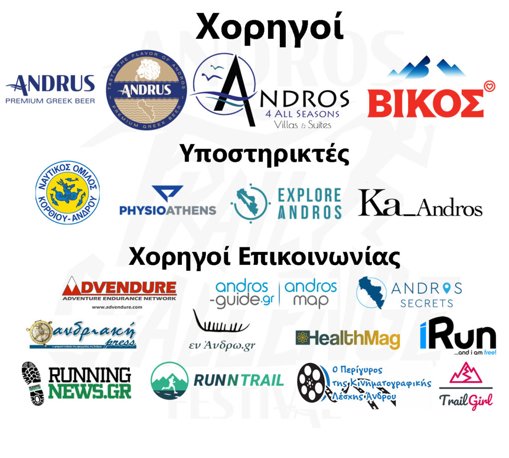 Χορηγοί: Andrus Beer, Andros 4 All Seasons Villas & Suites, Βίκος Φυσικό Μεταλλικό Νερό