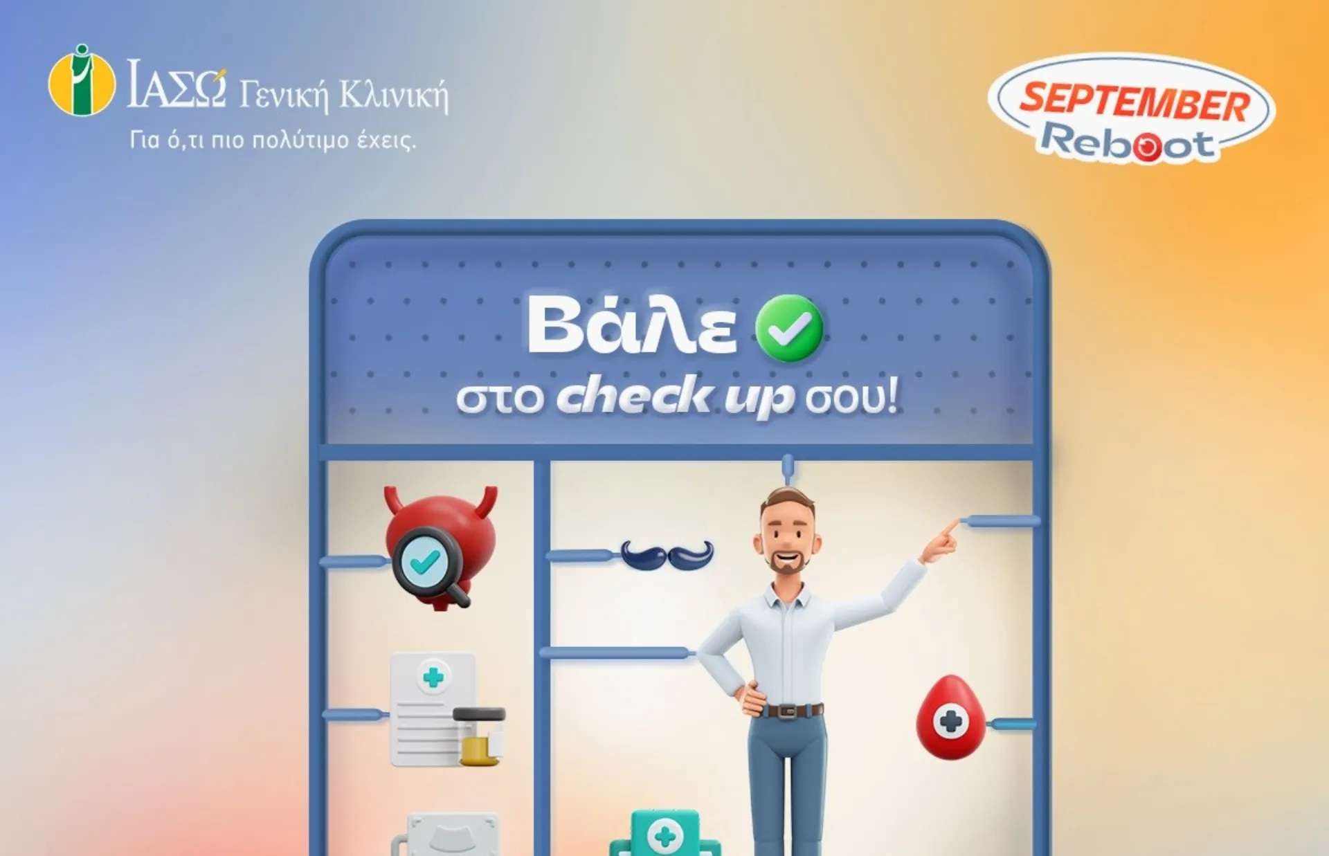 Κλείστε τώρα το ραντεβού σας στο Τμήμα Check-Up του ΙΑΣΩ Γενική Κλινική, στα τηλέφωνα 210 6383090-1, Δευτέρα – Παρασκευή, 07:00-15:00.