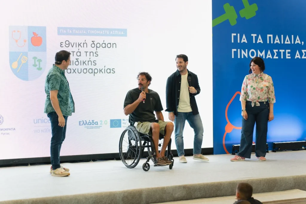 Η Εθνική Δράση κατά της Παιδικής Παχυσαρκίας αποτελεί ένα ολοκληρωμένο πρόγραμμα με στόχο την πρόληψη και την καταπολέμηση της Παιδικής Παχυσαρκίας μέσω της προώθησης και υιοθέτησης υγιεινών διατροφικών συνηθειών και σωματικής δραστηριότητας. Είναι το πρώτο πρόγραμμα που υλοποιείται σε όλη την επικράτεια, καλύπτοντας τις ανάγκες των παιδιών ηλικίας 0-17 ετών, παρέχοντας πολύτιμη βοήθεια σε αυτά και τις οικογένειές τους σε όλα τα επίπεδα όπως, ενδεικτικά, δωρεάν παρακολούθηση από διαιτολόγους-διατροφολόγους, υπηρεσίες συμβουλευτικής από παιδιάτρους, εκπαιδευτικές παρεμβάσεις στα σχολεία, δωρεάν πρόσβαση σε αθλητικές δραστηριότητες. Το πρόγραμμα υλοποιείται από το Υπουργείο Υγείας σε συνεργασία με την UNICEF στο πλαίσιο του Εθνικού Σχεδίου Ανάκαμψης και Ανθεκτικότητας Ελλάδα 2.0 με τη χρηματοδότηση της Ευρωπαϊκής Ένωσης – NextGenerationEU.